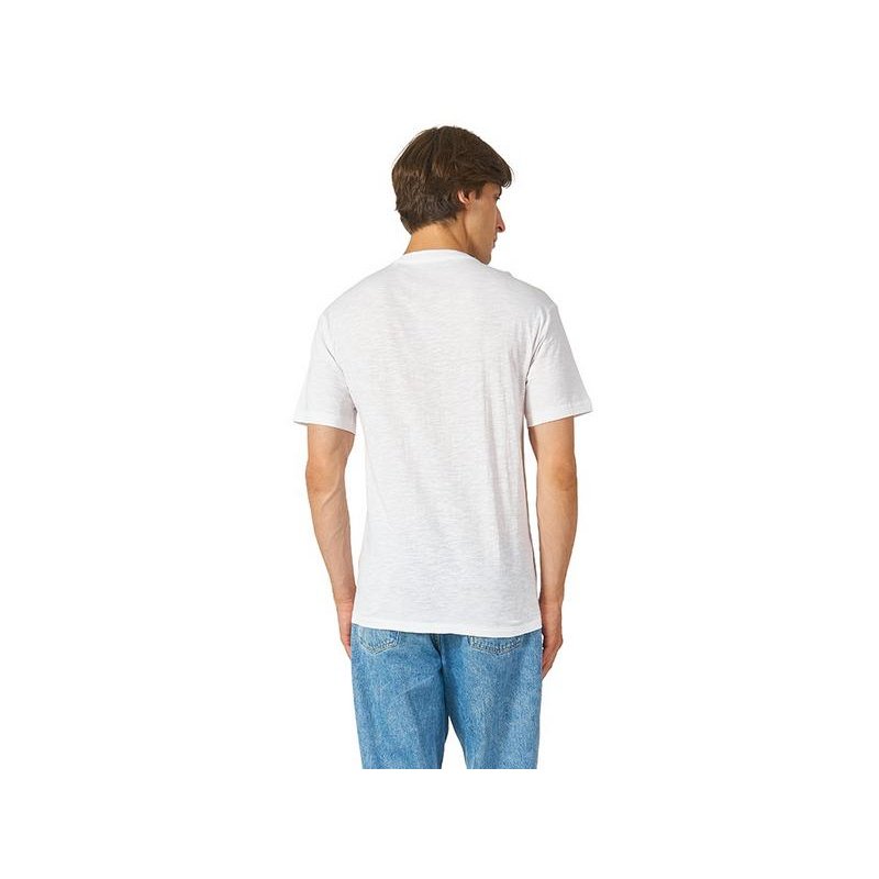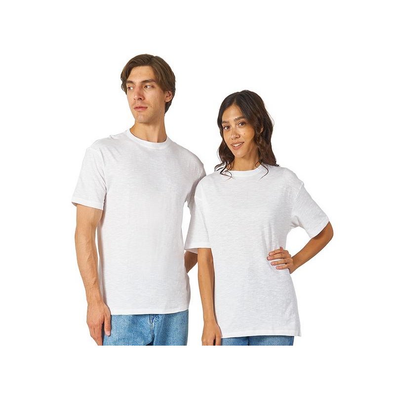 Полотно футболки имеет необычную структуру - с протяжками, но при этом гладкую поверхность, что обеспечивает идеальную поверхность для нанесения: прямая печать, трафаретная или термотрансфер прекрасно ложатся на такое полотно. Декоративная отстрочка по низу рукавов и изделия, а также отстрочка по горловине позволяют футболке дольше сохранять форму.