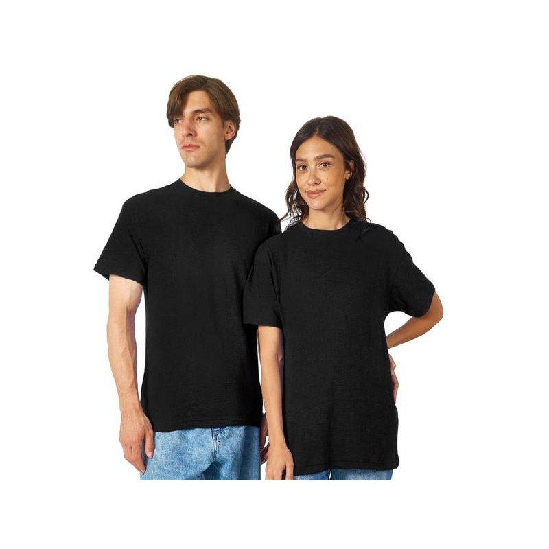 Полотно футболки имеет необычную структуру - с протяжками, но при этом гладкую поверхность, что обеспечивает идеальную поверхность для нанесения: прямая печать, трафаретная или термотрансфер прекрасно ложатся на такое полотно. Декоративная отстрочка по низу рукавов и изделия, а также отстрочка по горловине позволяют футболке дольше сохранять форму.