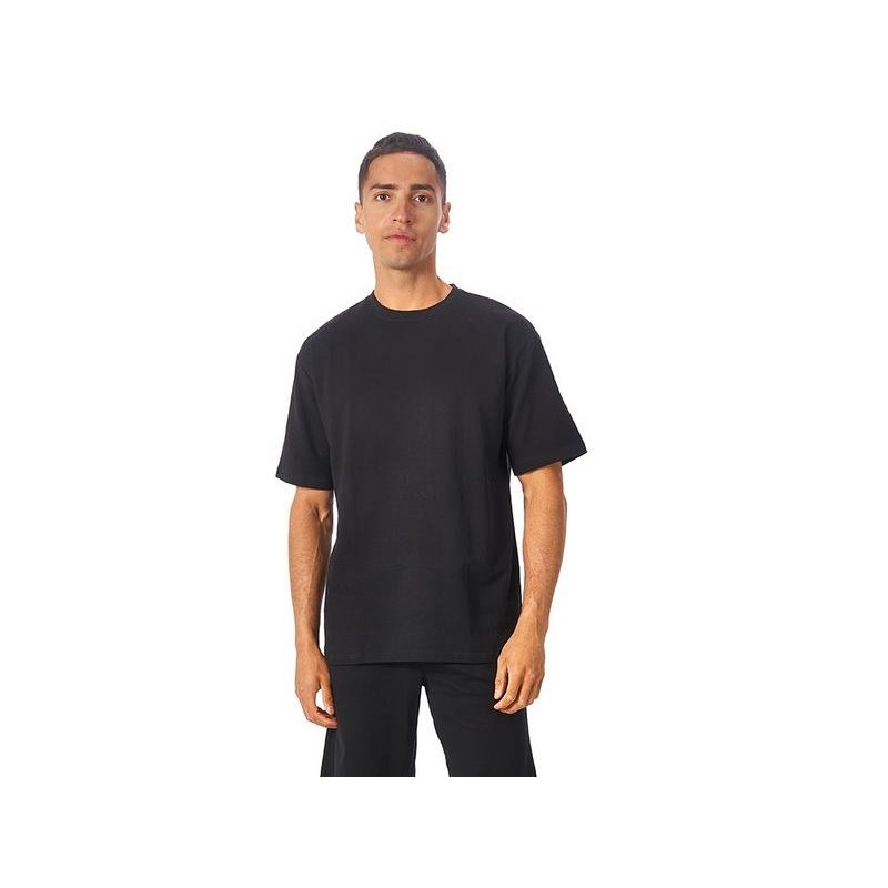 Футболка выполнена из хлопкового френч терри с петельками на изнаночной стороне. Горловина обработана рибом 2х2 и дополнительно усилена тесьмой-елочкой с внутренней стороны спинки. Гладкая поверхность полотна позволяет идеально нанести изображение. Футболка расслабленного силуэта для прогулок и других видов приятного времяпрепровождения