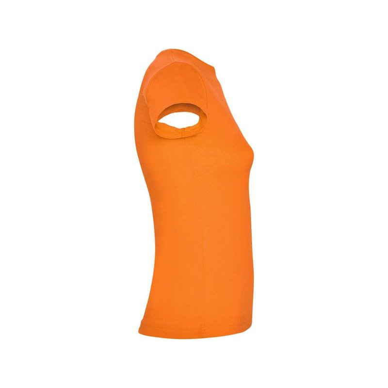 Приталенная женская футболка с боковыми швами и круглым вырезом горловины, двухслойный риб 1х1. Широкая цветовая палитра.