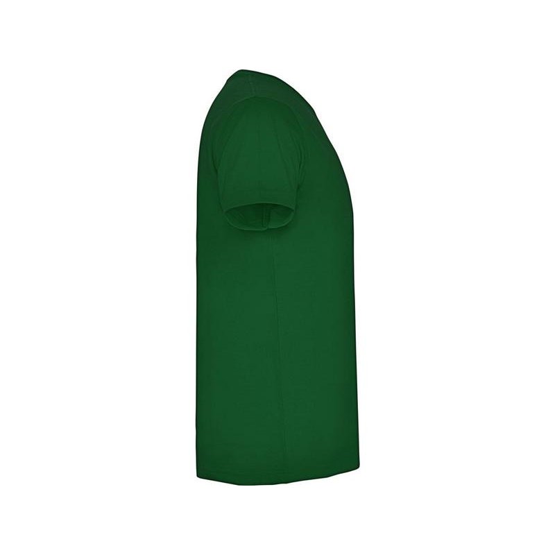 Мужская футболка без боковых швов с коротким рукавом и V-образным вырезом горловины, отделанном рибом 1х1. Горловина и плечевые швы дополнительно укреплены тесьмой.