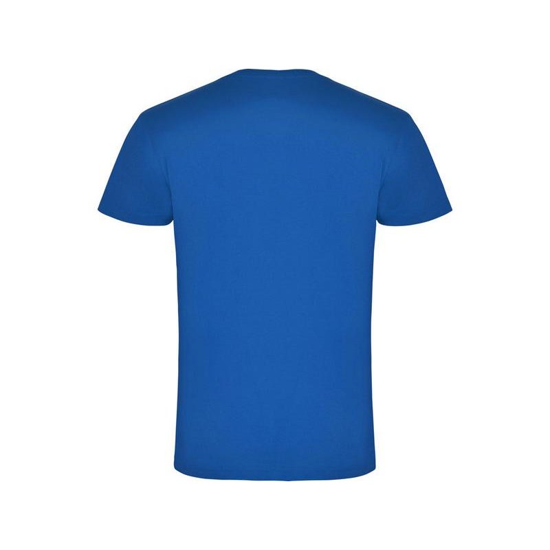 Мужская футболка без боковых швов с коротким рукавом и V-образным вырезом горловины, отделанном рибом 1х1. Горловина и плечевые швы дополнительно укреплены тесьмой.