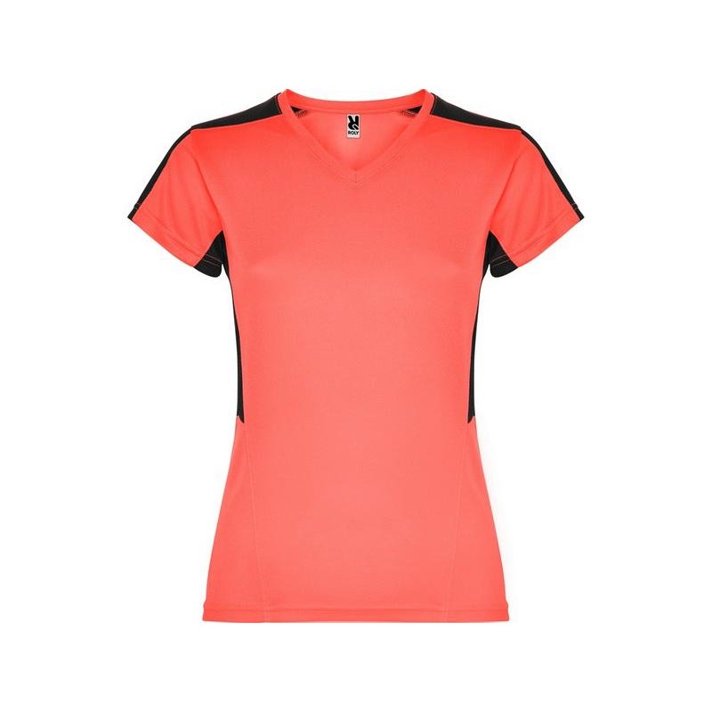 Женская футболка с коротким рукавом. V-образная горловина. Комбинация из 2 полотен контрастного цвета: структурное полотно на полочке и дышащая 3D сетка на плечах и боках.