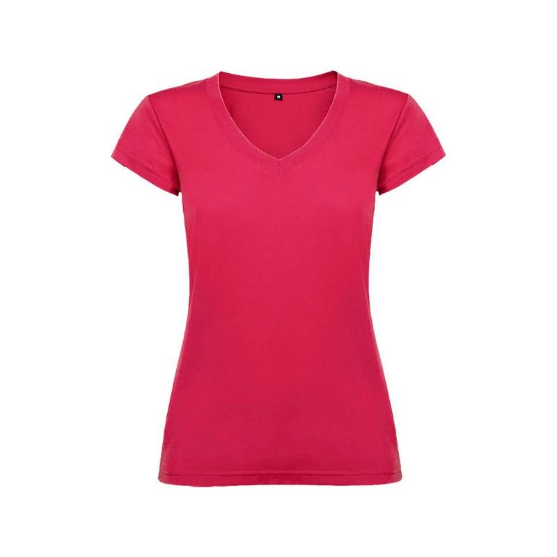 Женская футболка с коротким рукавом и V-образной горловине, обработано рибом 1х1. Полуприлегающий силуэт модели с боковыми швами.