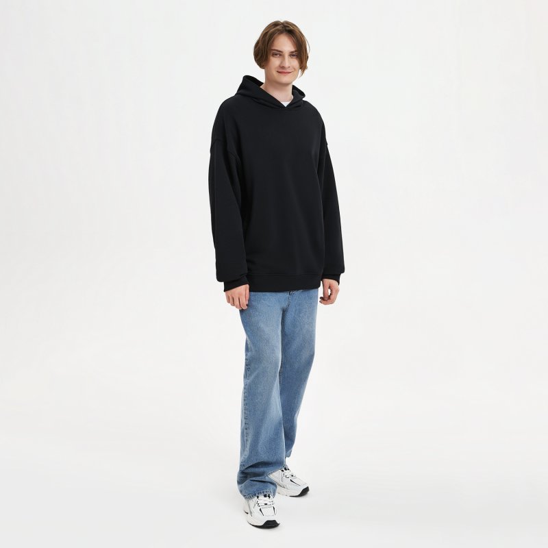 Модель выполнена из высококачественного хлопкового футера плотностью 380 г/м. Объёмная, но мягкая ткань комфортна для ежедневной носки.