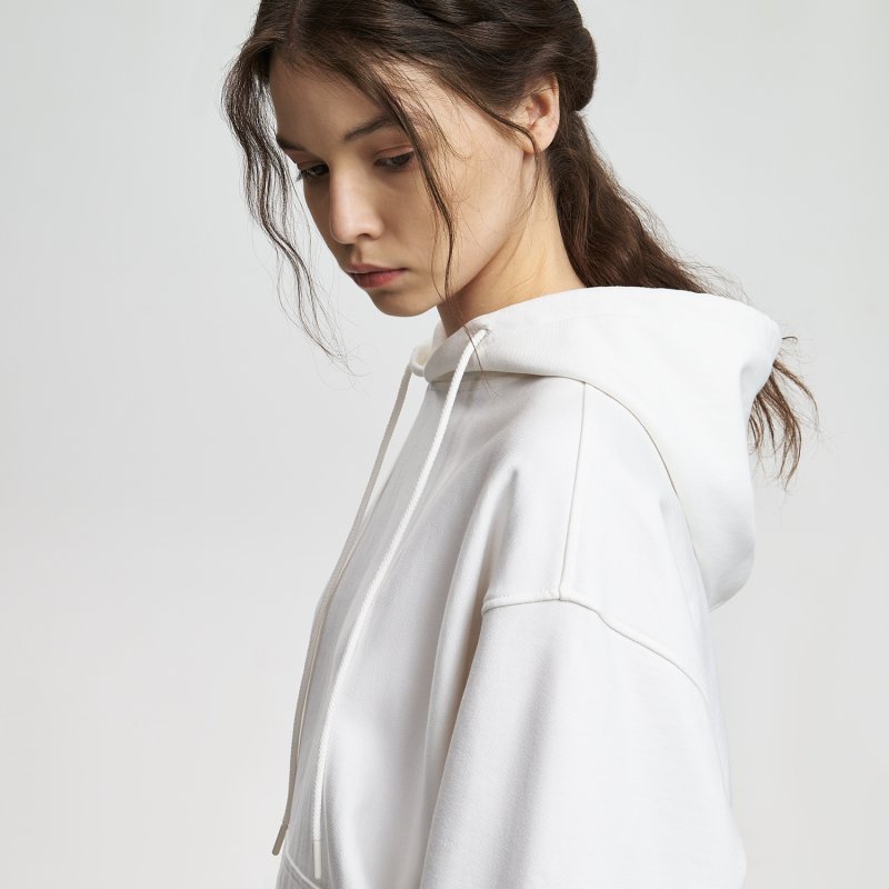 Модель выполнена из хлопкового футера плотностью 420 г/м (без начёса). Плотная, но мягкая ткань хорошо держит форму и при этом приятна к телу. Использована пряжа compact penye — прочная, тактильно деликатная, высокого качества.