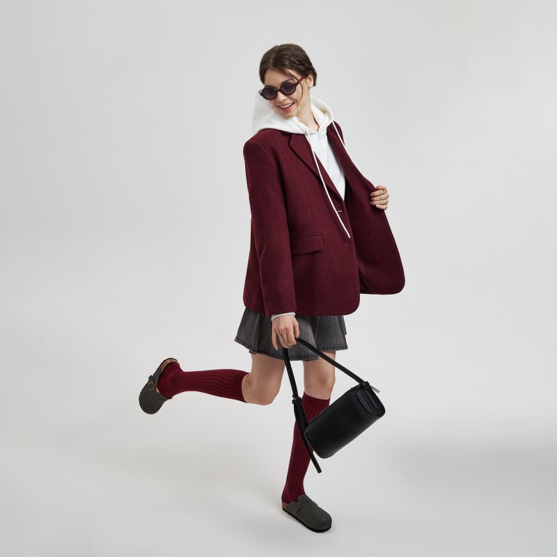 Особенность кроя — поперечное направление петель: не по долевой, а по утку. Это создаёт необычную, визуально заметную горизонтальную фактуру, которая подчёркивает оригинальность модели.