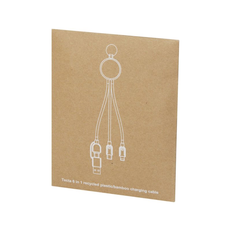 Зарядный кабель Tecta 6 в 1 из бамбука и переработанного пластика демонстрирует, где экологичность сочетается со стилем. Кабель длиной 25 см из переработанного TPE-пластика обеспечивает мощность зарядки 2 А. Входная мощность: USB A и Type-C. Выход: Type-C, micro USB и двойные наконечники 2 в 1 micro USB и Lightning, совместимые как с устройствами iOS, так и с устройствами Android. Алюминиевые наконечники USB обеспечивают надежное и стабильное соединение, гарантируя надежную зарядку каждый раз. Серебряный брелок из нержавеющей стали служит удобным способом для организации и переноски кабеля. Упакован в конверт из крафт-бумаги.