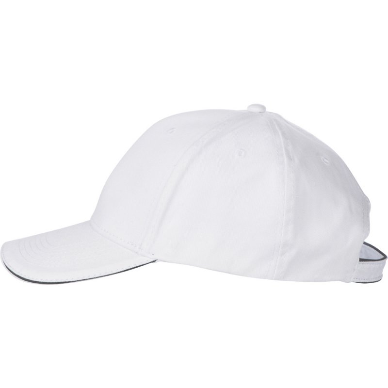 Шестиклинная бейсболка со светоотражающим кантом по козырьку и заднему хлястику - отличный вариант для занятий спортом в вечернее время. Объем регулируется металлической застежкой.