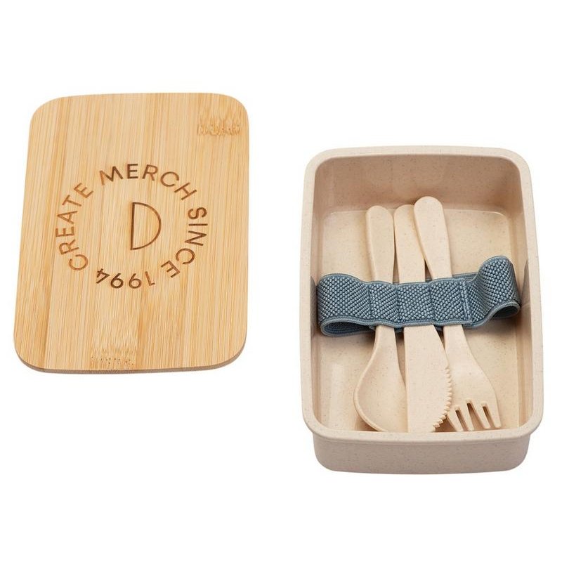 Прекрасный подарок для всех, кто с трепетом и заботой относится к окружающему миру, ведь в его составе 50% экологически чистого пшеничного волокна и 50% пластика. Контейнер для еды закрывается крышкой, выполненной из бамбука, материала, который также не несет никакого вреда природе. В комплекте тканевый ремешок и приборы.