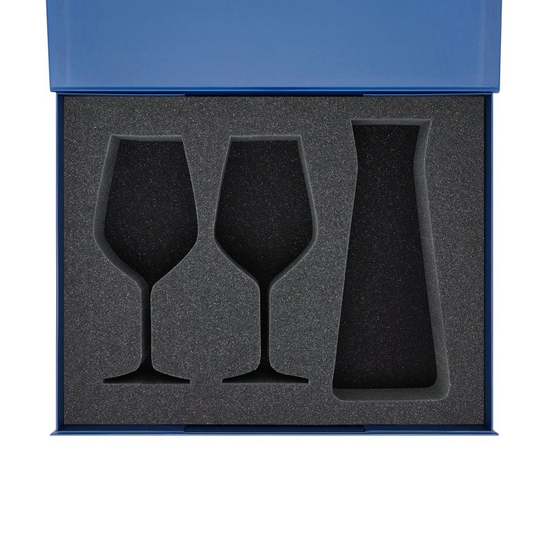 Идеальное решение для надежной и стильной упаковки двух бокалов и декантера для вина.
