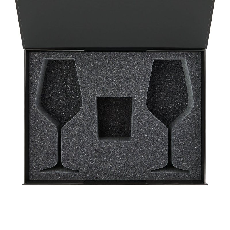 Тёмно-серый оттенок ложемента с легким блеском не только создает презентабельный и современный вид, но и гармонично сочетается с подарочной упаковкой любого цвета.