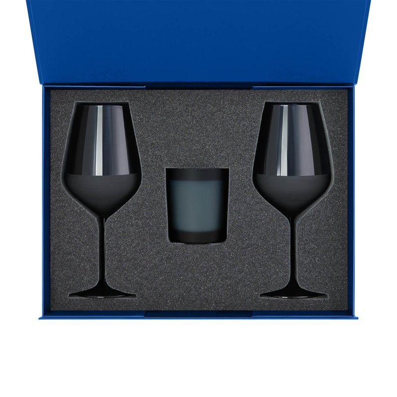 Идеальное решение для надежной и стильной упаковки двух бокалов для шампанского и свечи.