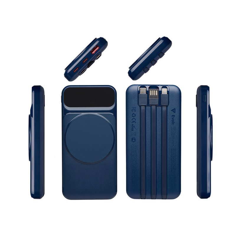 Функциональный и удобный внешний аккумулятор на 10 000 мАч обеспечивает быструю зарядку как по кабелям, так и беспроводным способом, поддерживая современные стандарты скорости. Цифровой дисплей на верхней панели мгновенно показывает точный уровень заряда, а встроенные кабели Lightning, USB-C и входной USB-A устраняют необходимость в дополнительных проводах — всё, что нужно для каждодневного использования, уже есть в самом гаджете. Компактные габариты, сопоставимые с размером смартфона, делают устройство идеальным для путешествий и повседневного использования. Сильные магниты гарантируют надёжное крепление при беспроводной зарядке. В комплекте есть силиконовая накладка: перед использованием удалите защитный стикер и прикрепите её к корпусу.