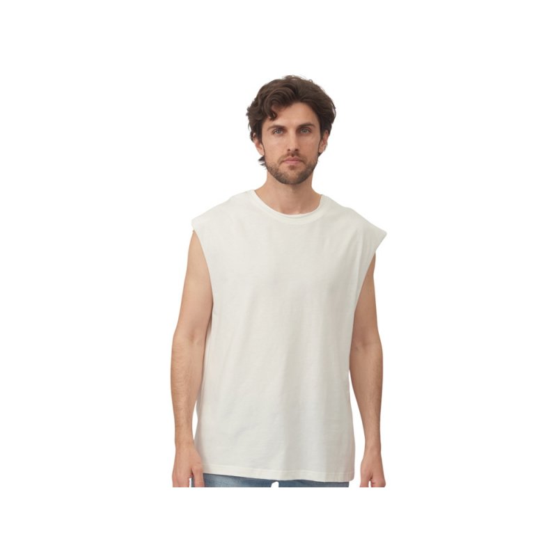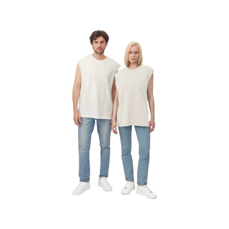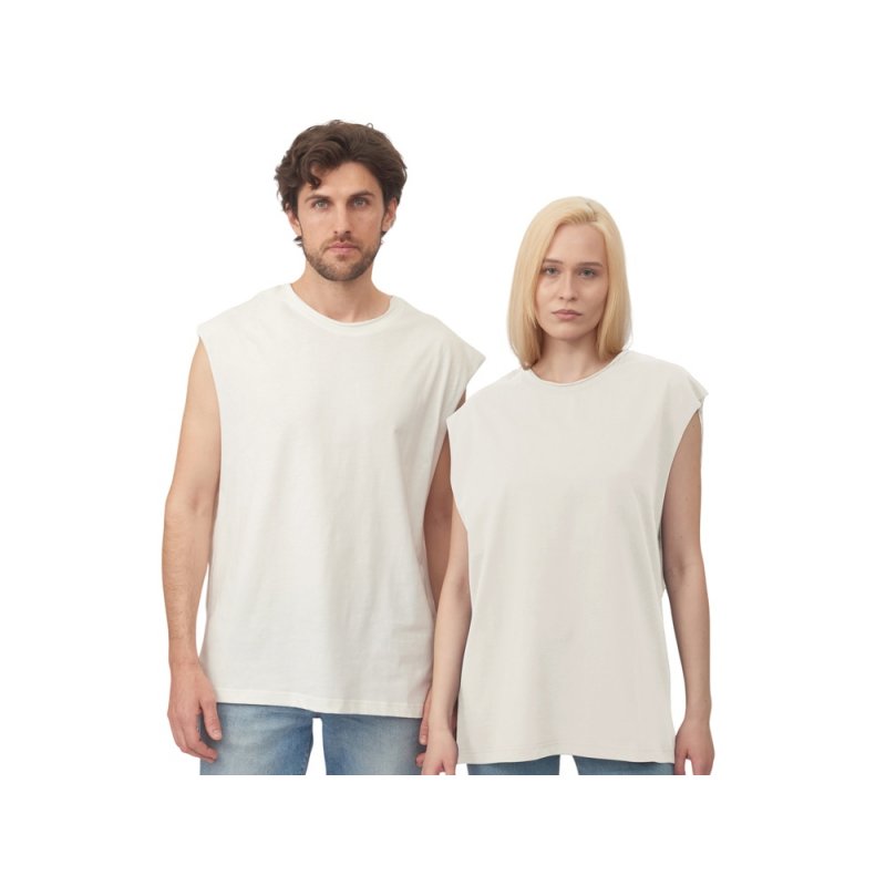 Майка унисекс расширенного силуэта со спущенным плечом, выполнена из плотного джерси 180гр.