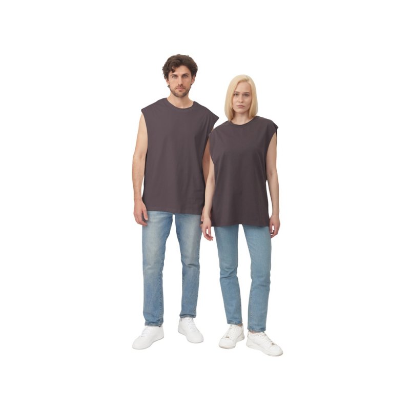 Майка унисекс расширенного силуэта со спущенным плечом, выполнена из плотного джерси 180гр.
