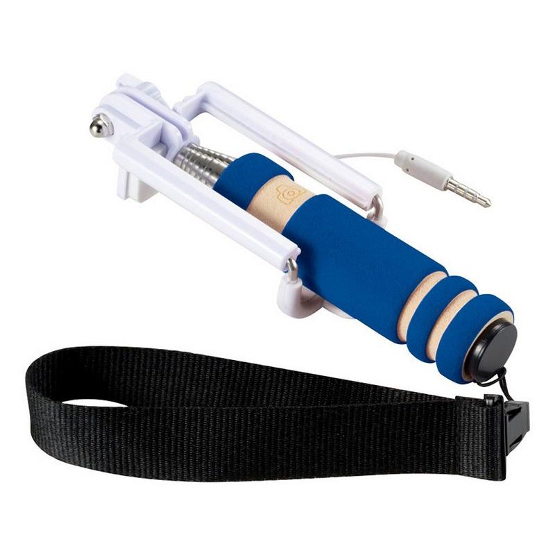 Мини селфи палка со шнурочком. Кнопка на ручке позволит быстро фотографировать. Можно выдвигать на различное расстояние. Идеальный аксессуар для путешествий. Упакована в коробку. Металл/ EVA.