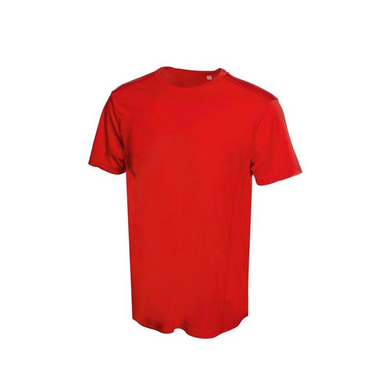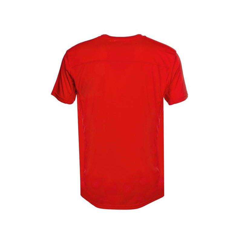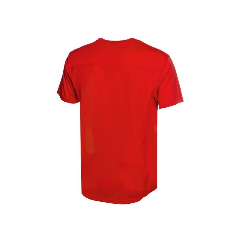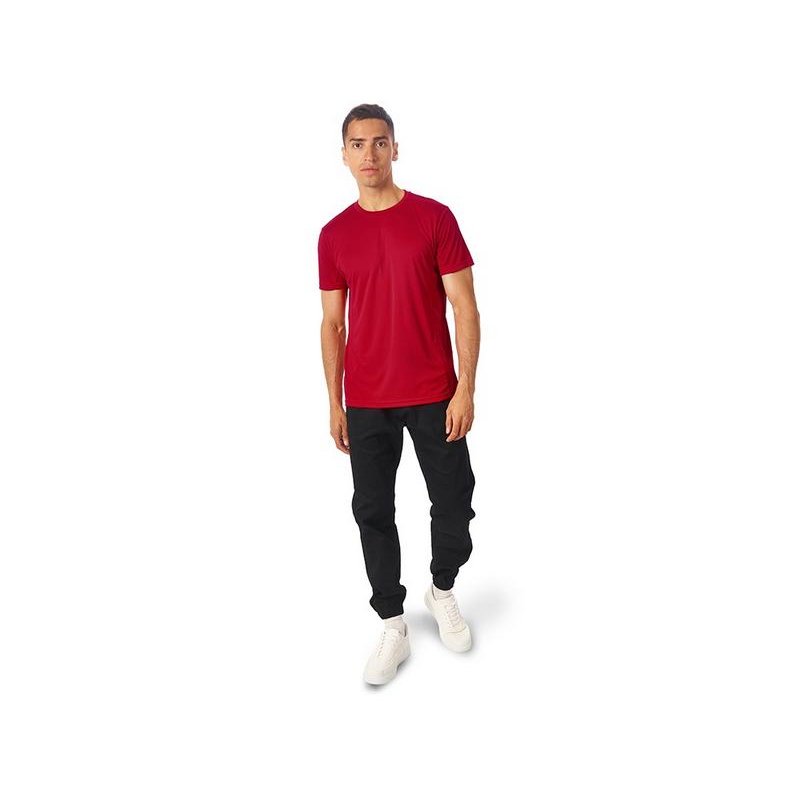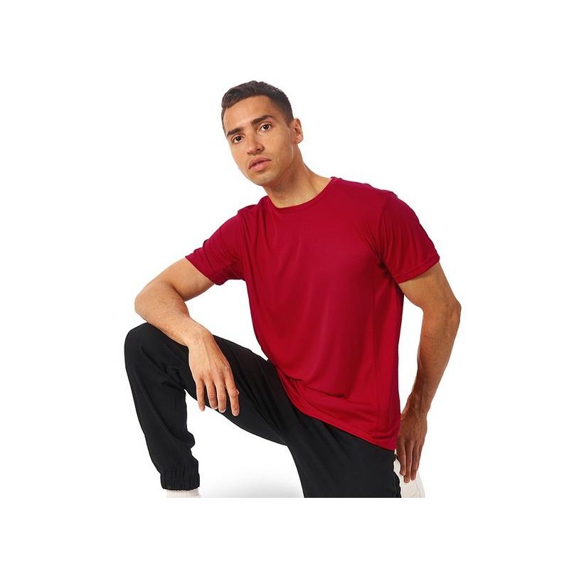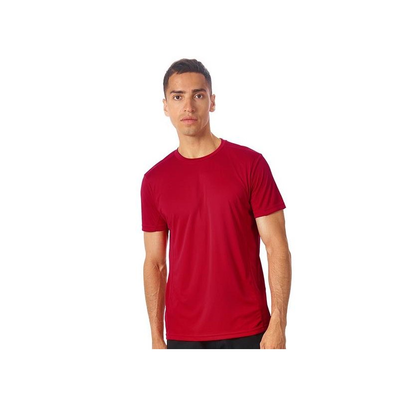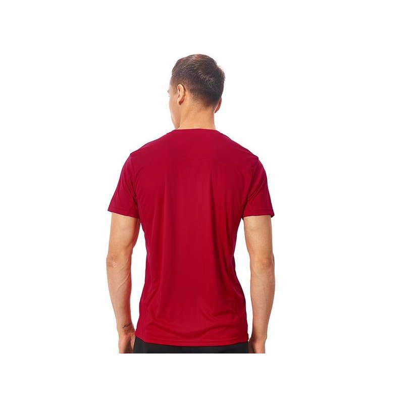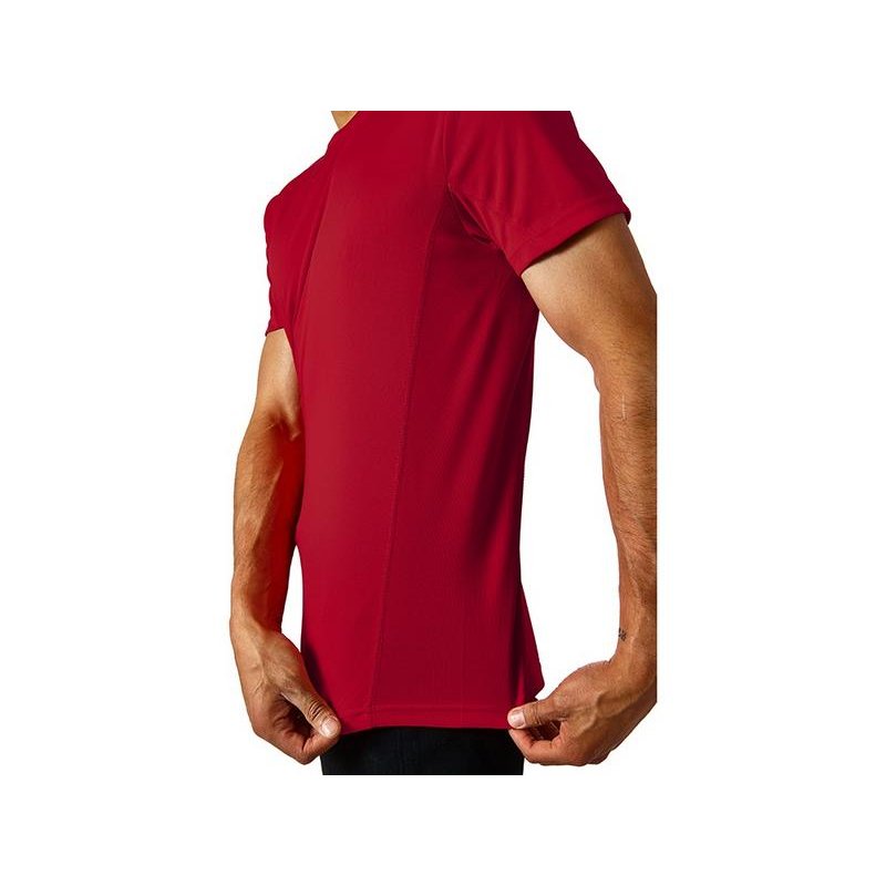 Мужская спортивная футболка выполнена из двух разных видов полотна: спинка и перед из интерлока имеют гладкую поверхность, а декоративные вставки выполнены из спортивной сетки ячеистой структуры. Благодаря наличию таких вставок воздух свободно проникает под футболку, охлаждая кожу во время спортивных нагрузок.