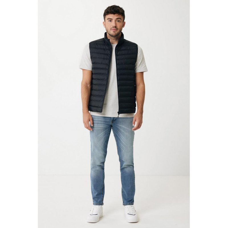 Стеганый жилет Meru согреет даже в самые холодные дни. Это экологичное решение: безрукавка на 100% изготовлена из переработанного полиэстера — в том числе, из него сделан и утеплитель. Жилет и карманы застегиваются на молнии со скрытой спиралью: это делает застежку водонепроницаемой. Пуллеры (собачки) молнии окрашены в тон жилету. Его можно носить как под основной курткой, так и в качестве верхней одежды осенью или весной. Ткань, из которой он изготовлен, успешно защищает от влаги благодаря водоотталкивающей пропитке. Тонкий, легкий, но теплый жилет подойдет для занятий спортом, прогулок и поездок. Плотность материала — 70 г/м². Сертифицировано OEKO-TEX® STANDARD 100. Сертифицировано AWARE™. Наличие индикаторных частиц AWARE™ подтверждает, что мы действительно используем переработанные материалы. 2% с продажи каждой вещи, отмеченной сертификатом AWARE™, мы перечисляем в поддержку всемирной организации Water.org.