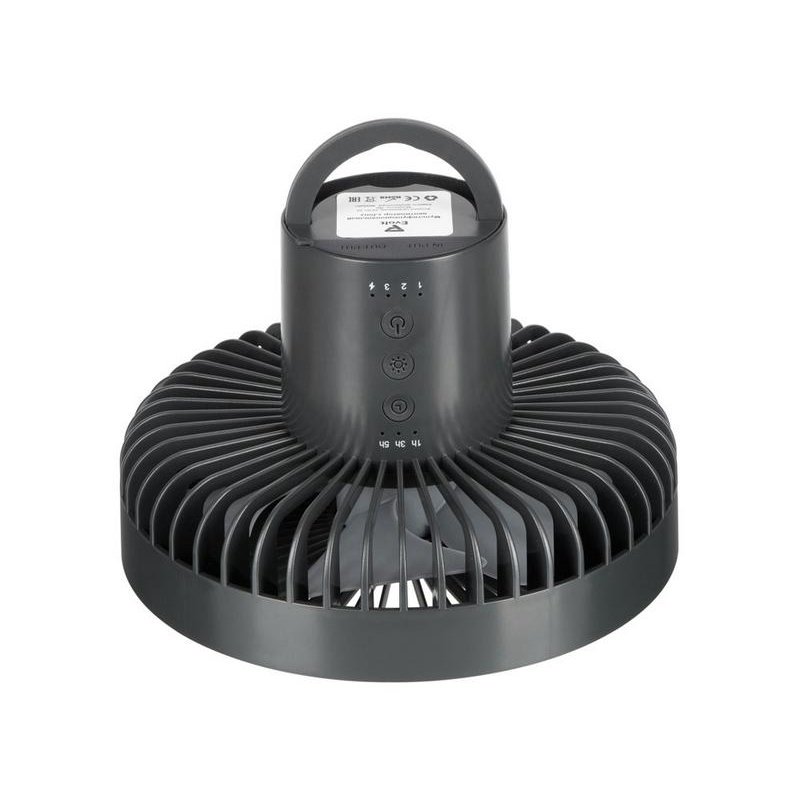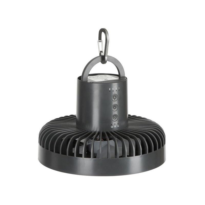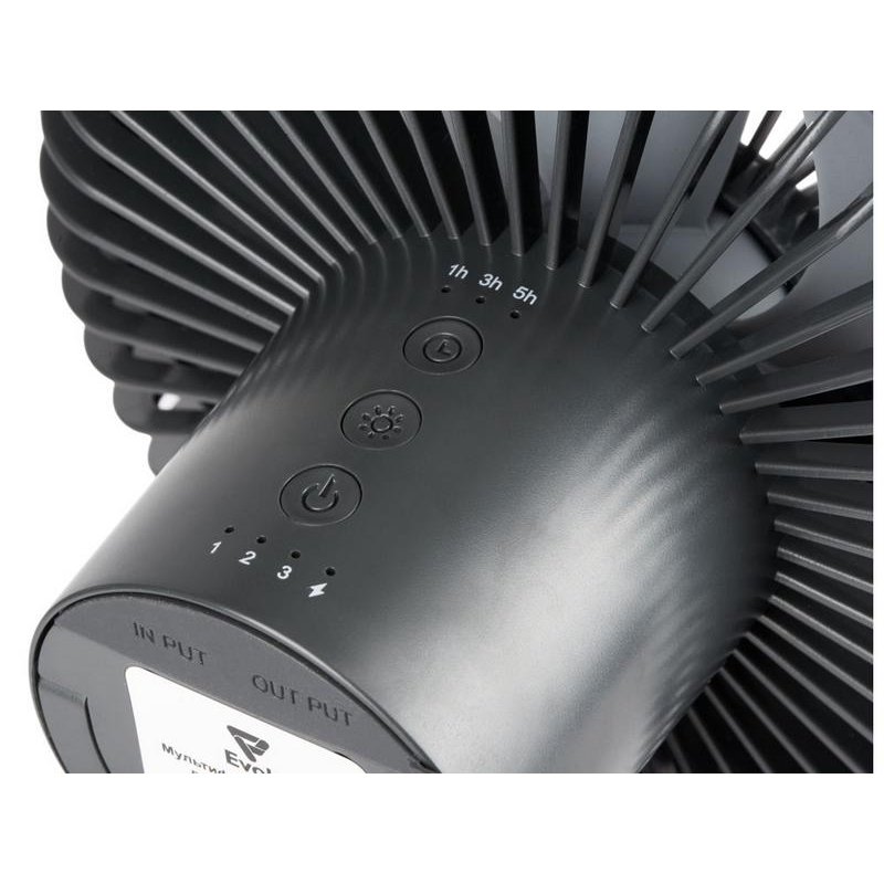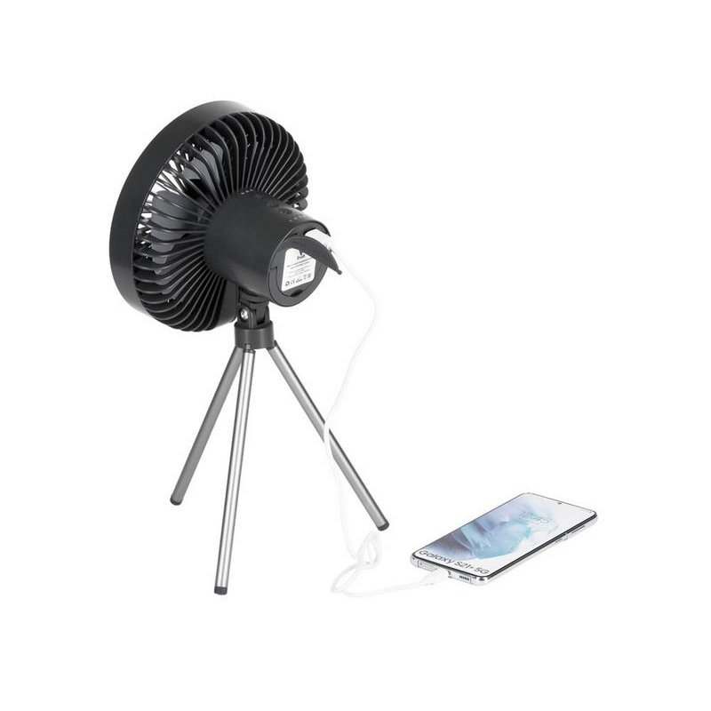 Ещё одна незаменимая функция для кэмпинга - возможность заряжать от вентилятора другие устройства (как от пауэрбанка), мощность аккумулятора - 3600 мА/ч.