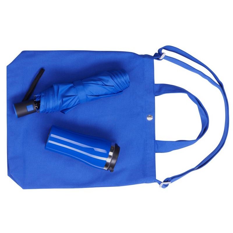 - Материал товара:сумка- 100% хлопок, термокружка- полипропилен снаружи, нержавеющая сталь внутри, зонт- эпонж