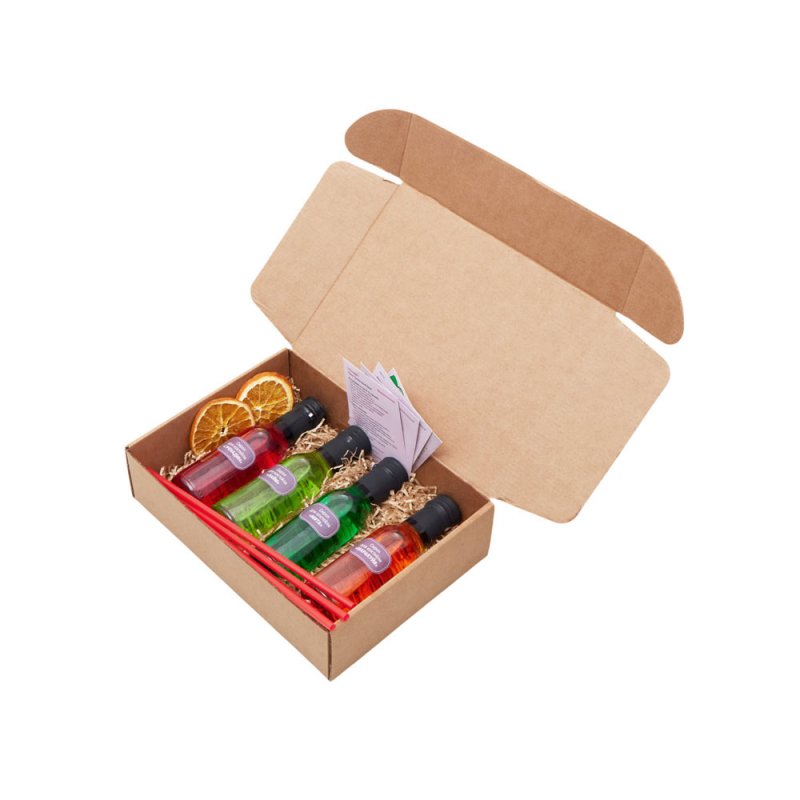 - 4 бутылочки сиропов по 100 мл с яркими вкусами: Лайм, Маракуйя, Мята, Гренадин – классика коктейльного бармена.