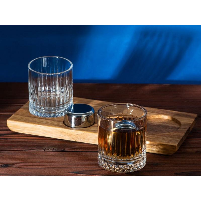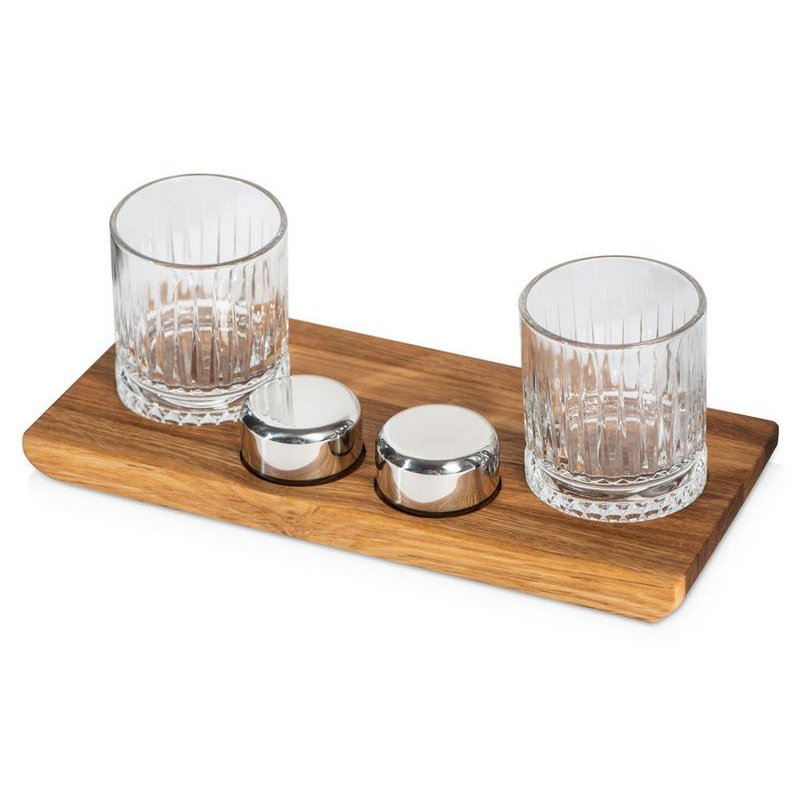 - Комплектность:деревянная подставка 28,5 х 12,9 х 2,1 см, бокал 210 мл- 2 шт, шайба для виски d5 х 2,8 см- 2 шт, упаковочная коробка