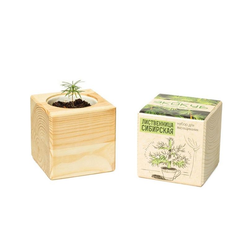 Декоративная лиственница отлично адаптируется к перепадам температурного режима, не требует обильного полива, непритязательна к освещению – разместить экокуб с деревцем можно на подоконнике или на полу, на балконе или в домашней оранжерее. По мере роста деревце можно пересадить в кадку побольше или в открытый грунт.