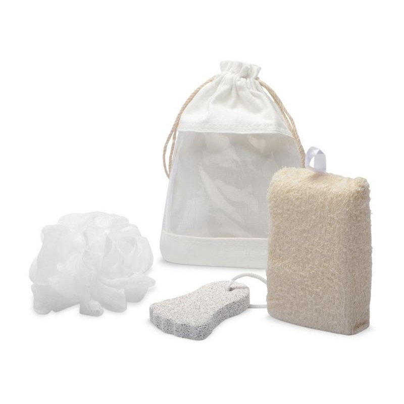 - Материал товара:сумка - полиэстер, хлопок с ПВХ, губка для ванны - полиэстер, мочалка - полиэтилен, пемза - известняк