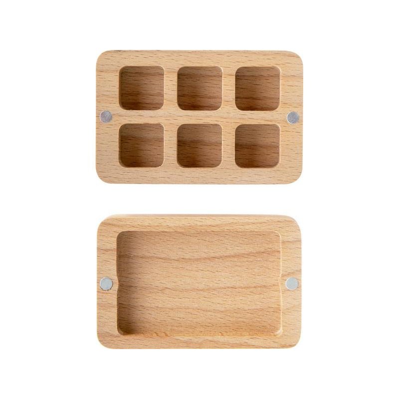 Подарочная коробка из бука не только позволит преподнести набор должным образом, но и поможет обладателю в дальнейшем правильно хранить камни. Коробка-футляр состоит из двух половинок с отверстиями под каждый камень, закрывается на 8 магнитов, закрепленных по углам половинок.