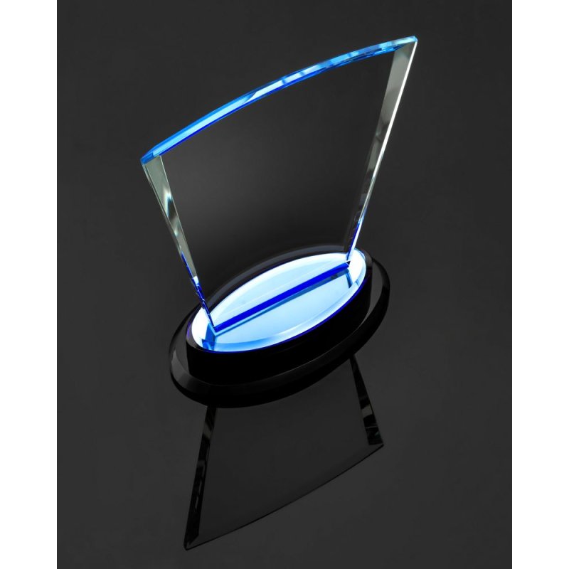 Стела изготовлена из стекла К9, в основе которого лежит оптическое боросиликатное стекло. Эту марку стекла отличает низкий процент посторонних включений, высокий показатель преломления и высокая прозрачность — идеальные качества для изготовления наград премиального уровня.