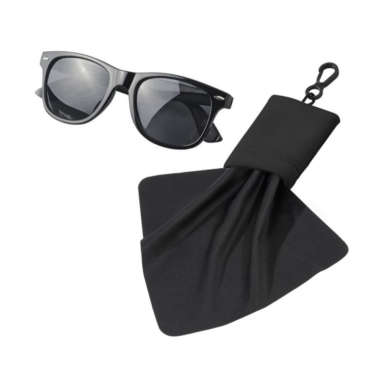 Очищающая салфетка Clear из микрофибры в чехле. Очищающая салфетка из микрофибры для протирания очков, мобильных телефонов, экранов компьютеров и многого другого. Упакована в чехол с карабином для удобной переноски. Ультратонкая микрофибра. 0,010.