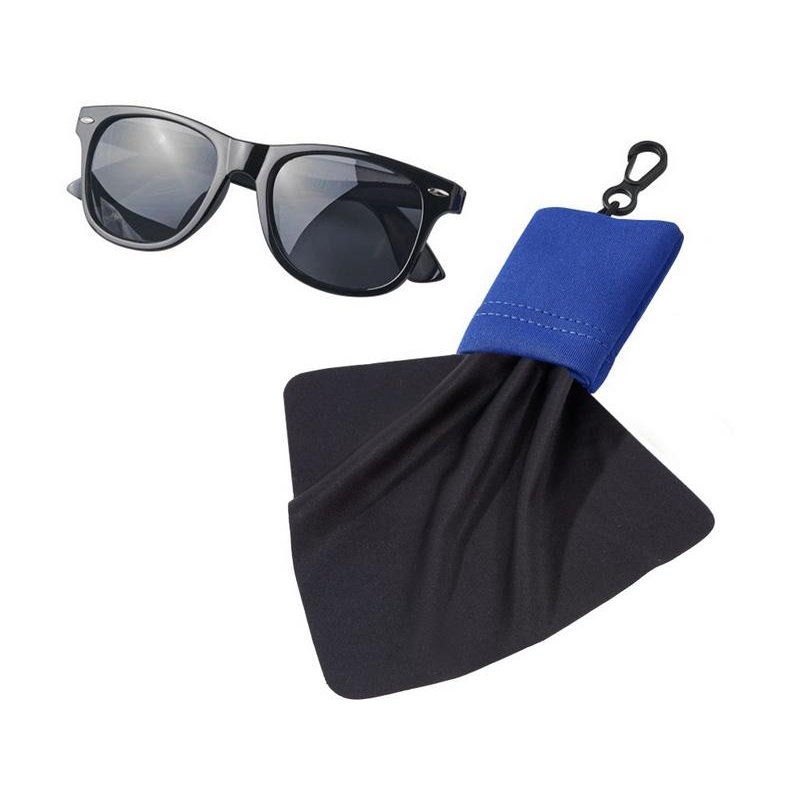 Очищающая салфетка Clear из микрофибры в чехле. Очищающая салфетка из микрофибры для протирания очков, мобильных телефонов, экранов компьютеров и многого другого. Упакована в чехол с карабином для удобной переноски. Ультратонкая микрофибра. 0,010.