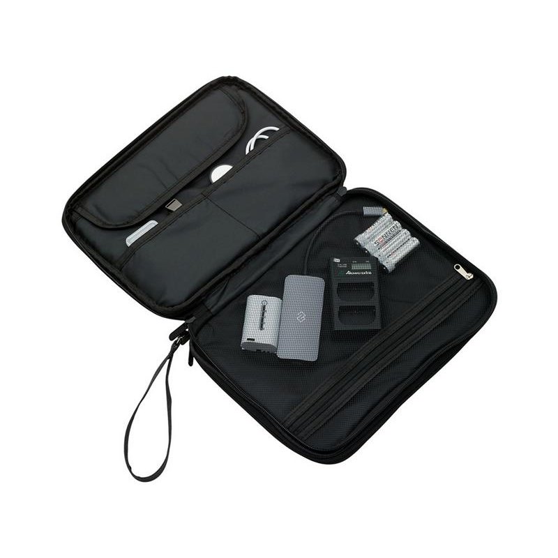 Он имеет два независимых отделения на молнии, каждое из которых оснащено множеством кармашков и отделений разной формы. Это позволяет удобно разместить провода, зарядные устройства, наушники, флешки и другие мелкие гаджеты, предотвращая их запутывание и повреждение.