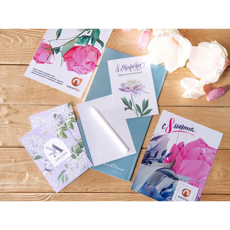 Открытка формата А6 из высококачественной глянцевой бумаги 300 гр. Предназначена для нанесения индивидуального дизайна заказчика с одной или обеих сторон.