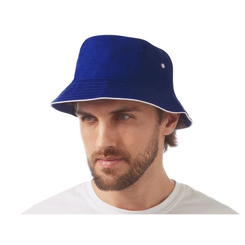 Панама из хлопкового твила с контрастным кантом и контрастными вентиляционными отверстиями.