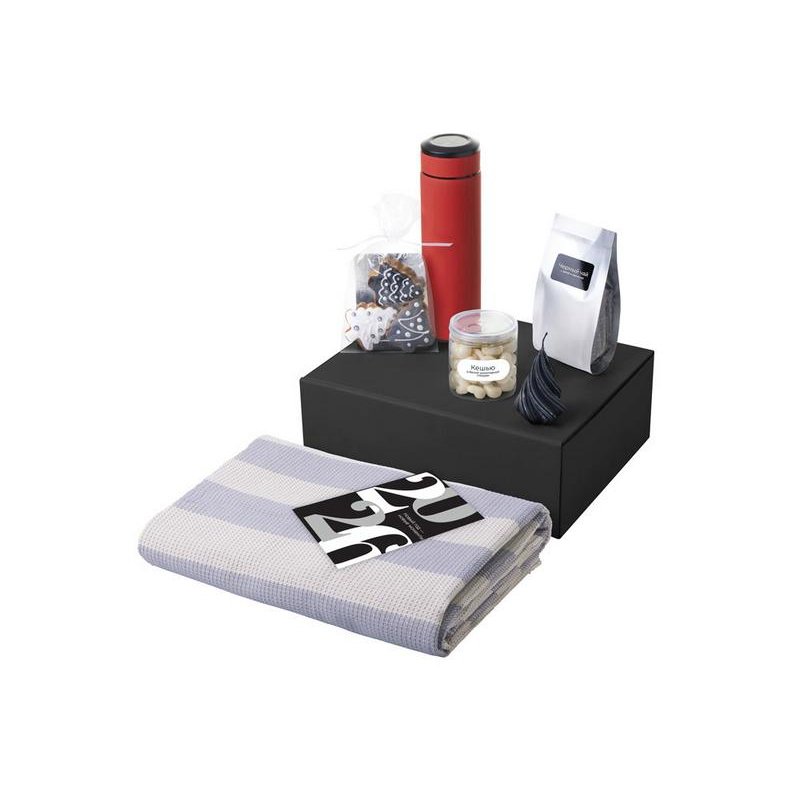 - Материал товара:плед - 100% хлопок, мешок - нетканый материал (спанбонд), термос - нержавеющая cталь с покрытием soft-touch, открытка - бумага