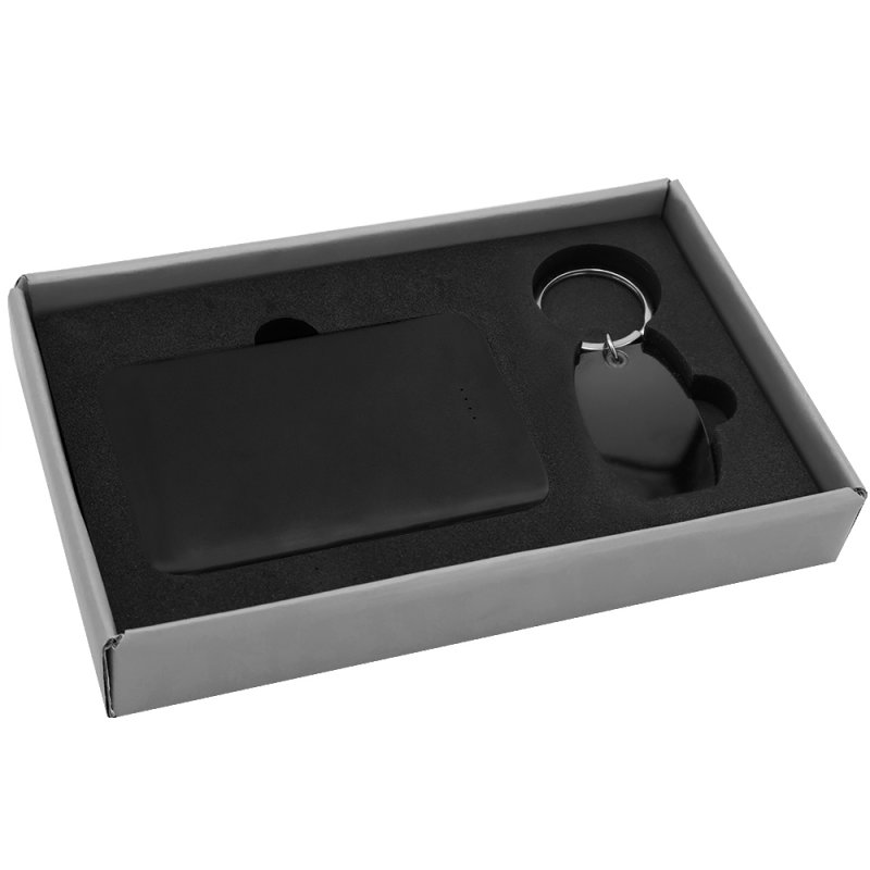 Подарочный набор в элегантной цветной картонной коробке серого цвета с конструкцией крышка-дно. Внутри расположены аккуратно закрепленные на ложементе внешний аккумулятор емкостью 5000 mAh и металлический карманный брелок. Внешний аккумулятор обладает компактным дизайном и обеспечивает надежный запас энергии для мобильных устройств в пути, а стильный металлический брелок станет практичным и эстетичным аксессуаром для ключей. Этот набор идеально подходит в качестве презента для тех, кто ценит удобство, качество и современный стиль.
