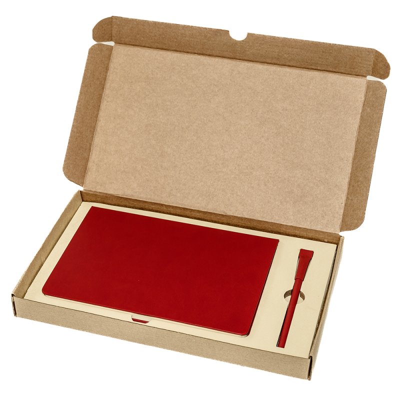 Подарочный набор в стильной картонной коробке бежевого цвета. Внутри на аккуратном ложементе располагаются ежедневник недатированный в твердом переплете и картонная ручка с колпачком.