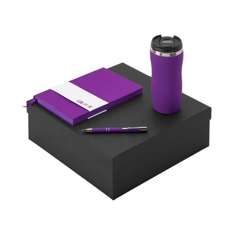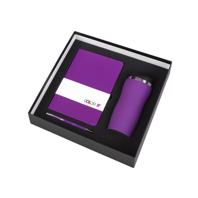 - Материал товара:блокнот - искусственная кожа с покрытием софт-тач, ручка - алюминий с покрытием софт-тач, термокружка - нержавеющая cталь с покрытием софт-тач, коробка - картон