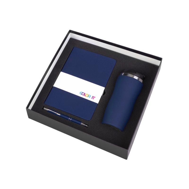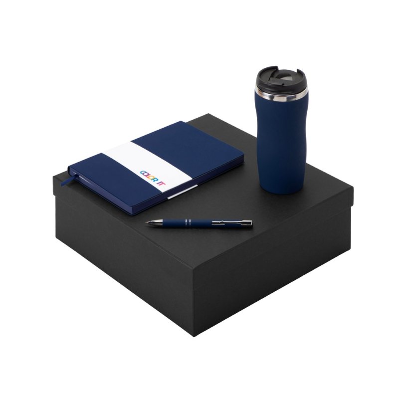- Материал товара:блокнот - искусственная кожа с покрытием soft-touch, ручка - алюминий с покрытием soft-touch, термокружка - нержавеющая cталь с покрытием soft-touch, коробка - картон
