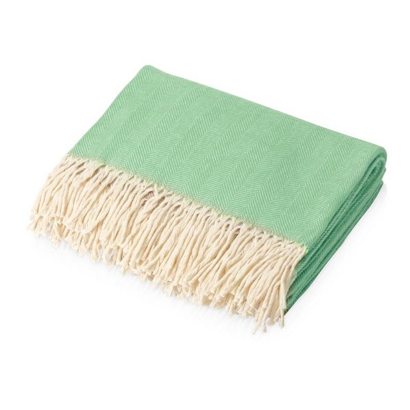 Плотный мягкий плед из натурального хлопка украшен бахромой. Можно использовать как теплое одеяло или как покрывало для украшения интерьера.