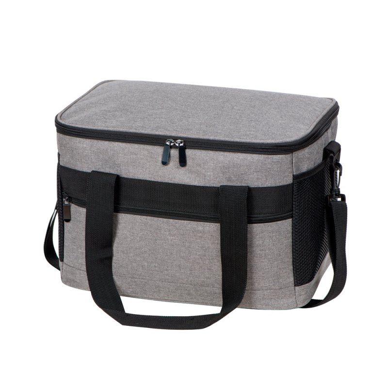 Вместительная сумка-холодильник имеет основное отделение и карман спереди на молнии. Специальная конструкция дна предотвращает протекание жидкости от размораживания. Съемный плечевой ремень регулируется по длине. В комплекте открывалка для бутылок.