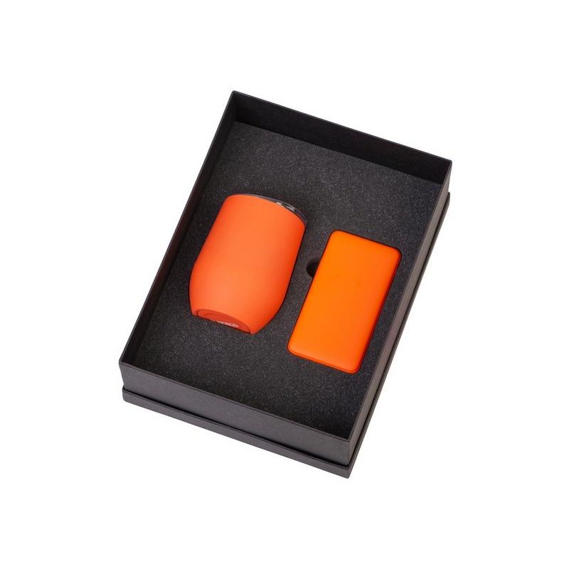 - Материал товара:повербанк- пластик с покрытием soft-touch, термокружка- нержавеющая cталь с покрытием soft-touch