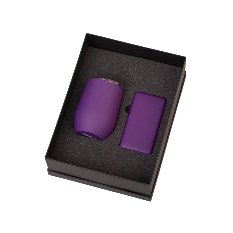 - Материал товара:повербанк- пластик с покрытием soft-touch, термокружка- нержавеющая cталь с покрытием soft-touch