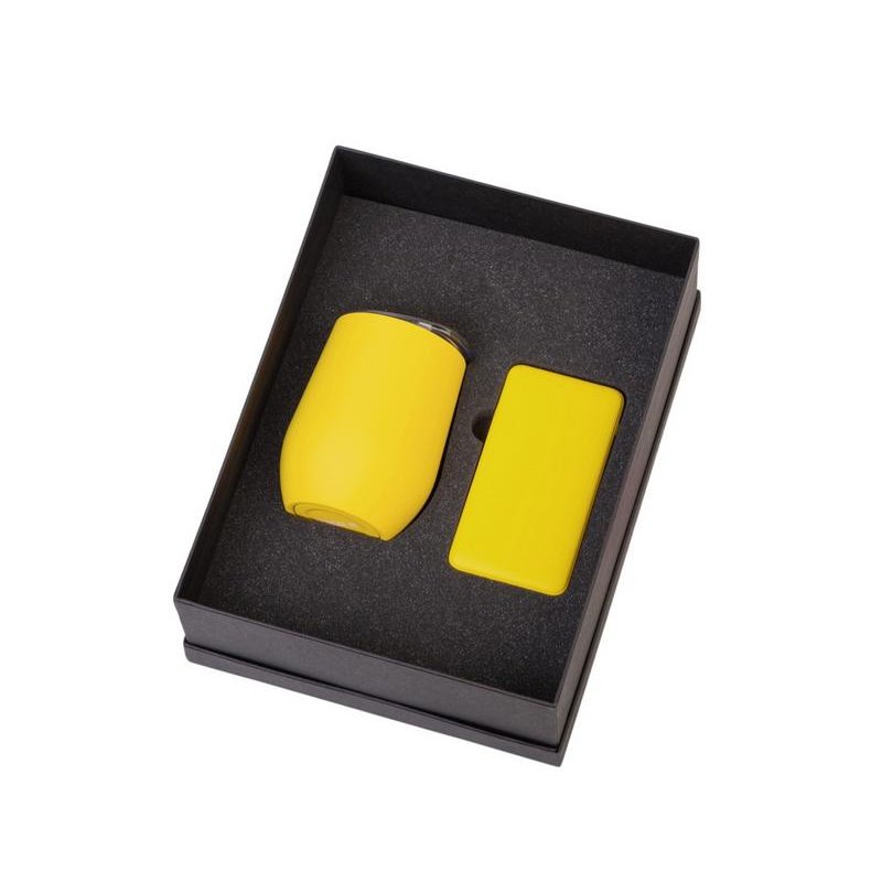 - Материал товара:повербанк- пластик с покрытием soft-touch, термокружка- нержавеющая cталь с покрытием soft-touch