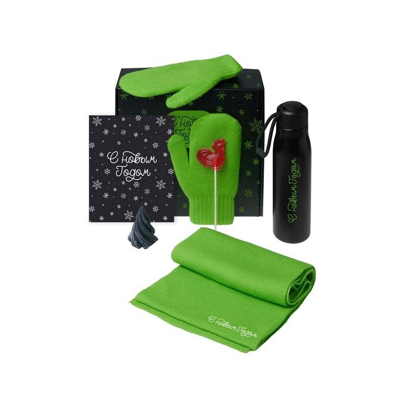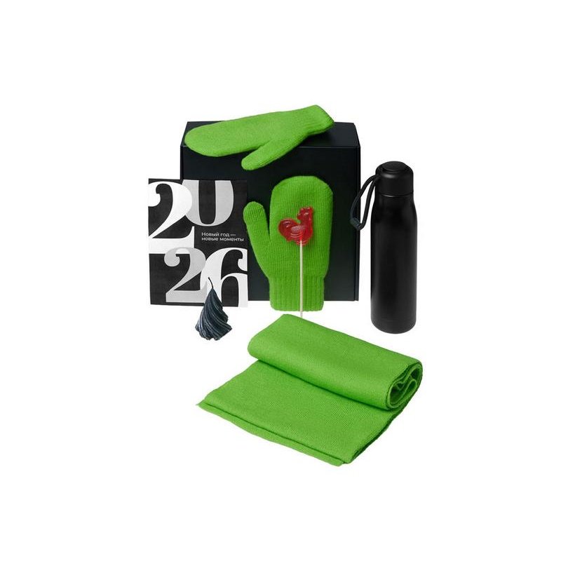 - Материал товара:варежки - 100% акрил; шарф - 100% акрил; термос - нержавеющая сталь; открытка - бумага; мешок - нетканый материал