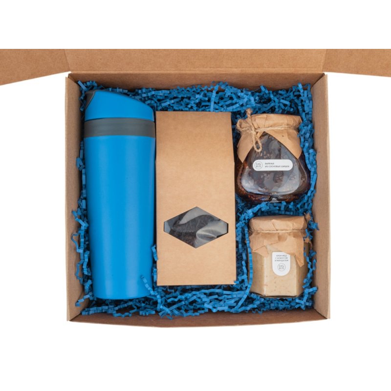 - Материал товара:коробка - картон, банка - стекло, термокружка - полипропилен