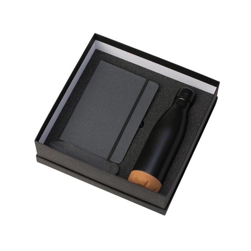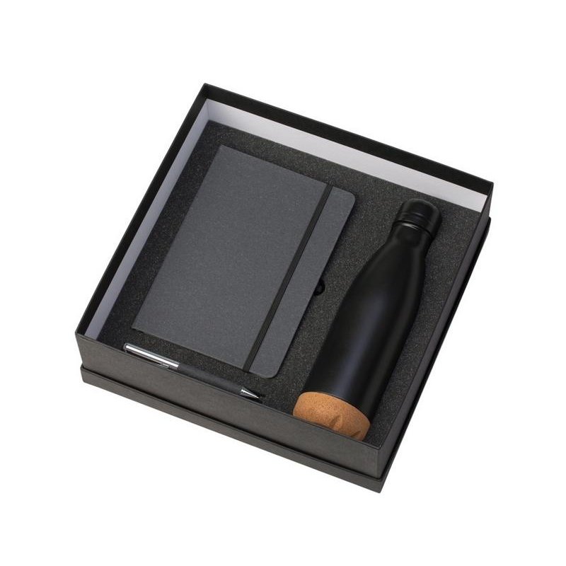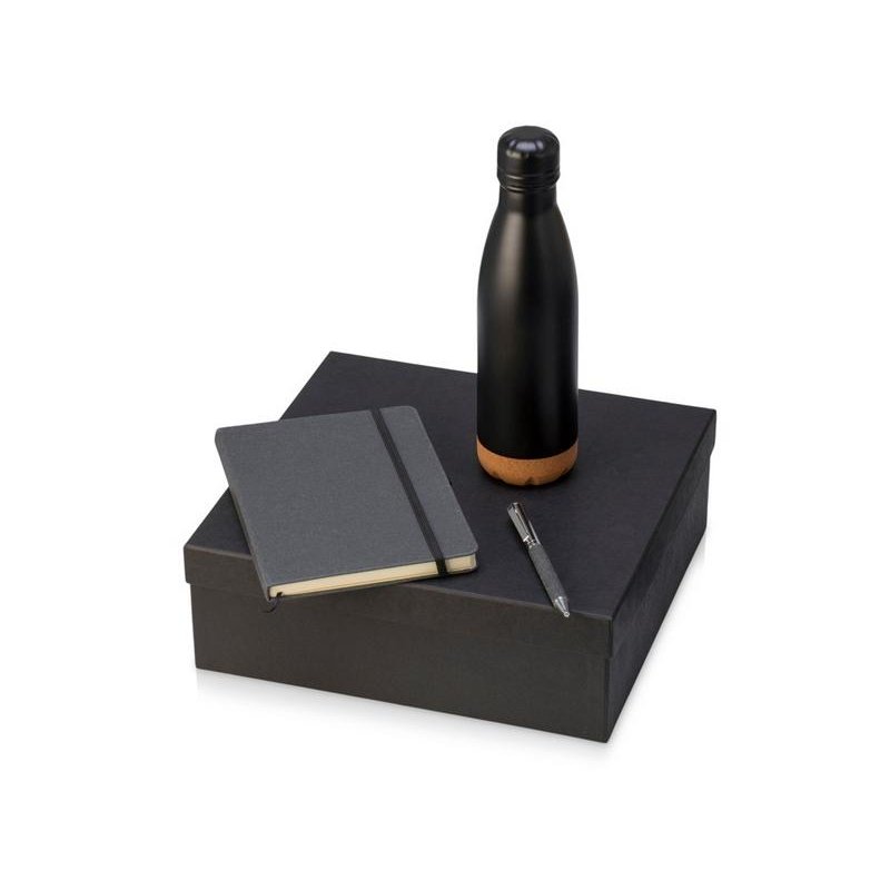 Набор из блокнота, ручки и бутылки для воды - идеальный вариант для подарка сотрудникам или клиентам.