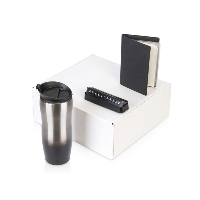 - Комплектность:термокружка 450 мл, обложка для автодокументов, парковочная табличка